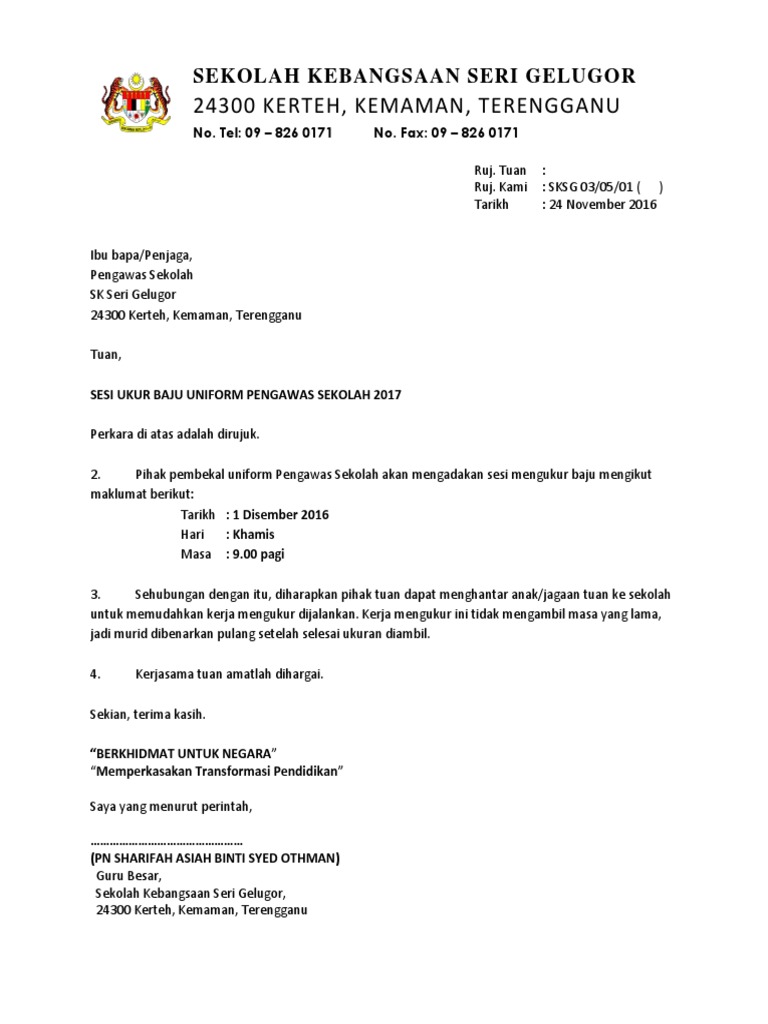 Surat Pemberitahuan Sesi Ukur Baju Pdf
